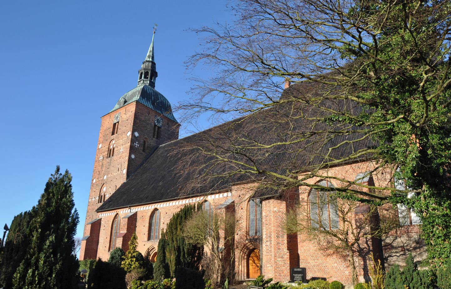 Schon von weitem ist der Kirchturm von Burg zu sehen, dem größten Ort auf Fehmarn.