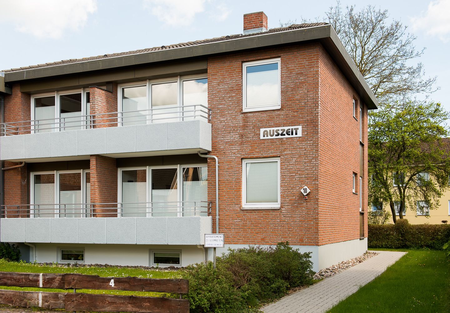 Das Haus "AUSZEIT" in Kellenhusen hat vier Ferienwohnungen und liegt mit ca. 200 m Entfernung ziemlich mittig zwischen Strand und Wald an einer Wohnstraße.