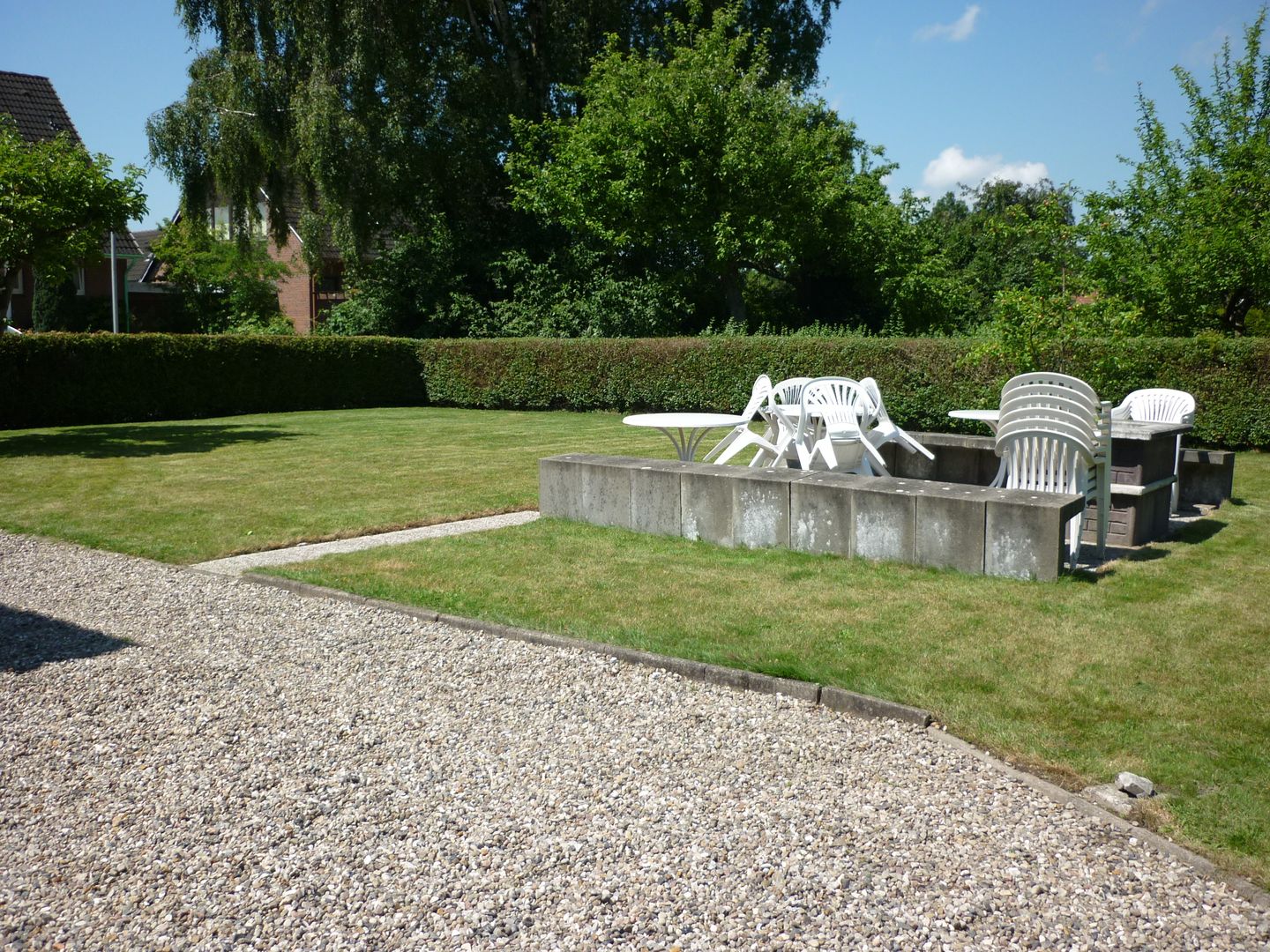 Im nicht von der Straße einsehbaren Bereich hinter den Häusern haben wir zwei große Fahrradständer und eine Wäschespinne aufgestellt.